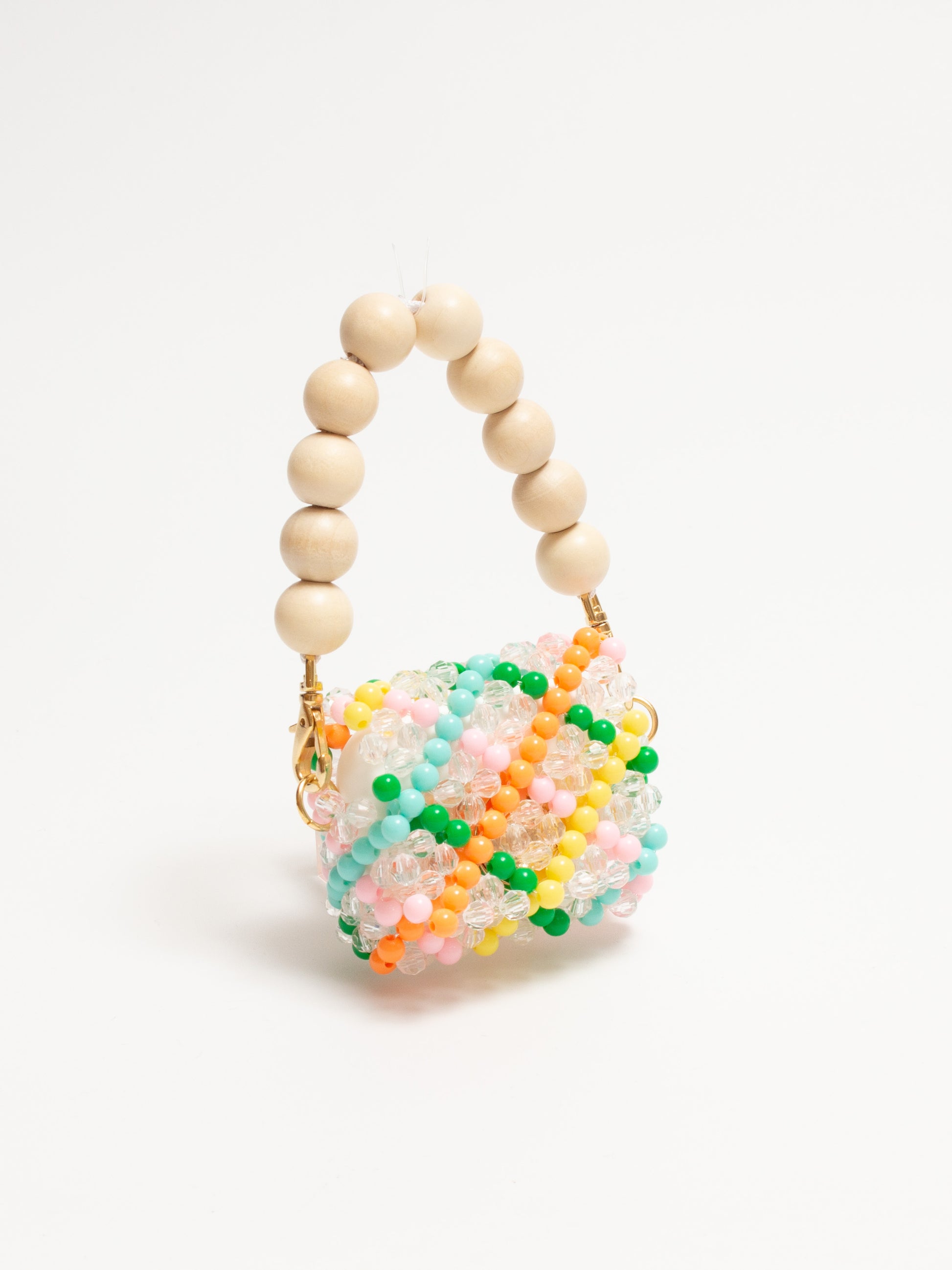 カラフルなビーズを立体的に編み上げ、コンパクトながらも存在感のあるデザインに仕上げました。